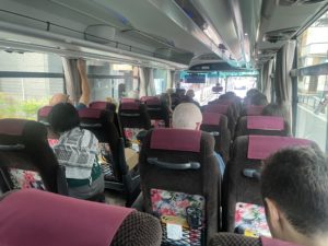 アイリッシュ・タイムで少しアバウトではありましたが、一応みんな大幅に遅れることなく集まって、大型観光バスで移動。