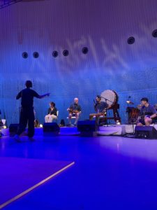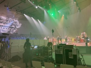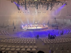 ライティングも幻想的で、ちょっとシルク・ド・ソレイユの劇場のような雰囲気がありましたが、この布が無いと響き過ぎてワンワンになってしまう、あるいはあってもまだ響き過ぎる感があり、1600人のお客さんが吸ってくれれば少しはマシになるかしらという淡い期待。