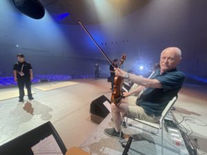 曲の繋ぎだけ決めてOKになったところで、音楽監督のチェリスト、ニール・マーティンとプロデューサーら制作スタッフ陣が部屋に入ってきてチェック。